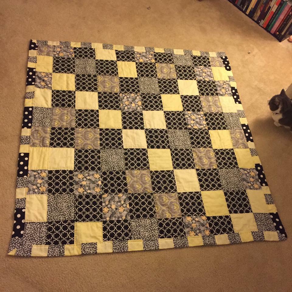 And my mental health. I don’t like following the rules, so this gives me the chance to be creative and make pretty things. I love to quilt, cross-stitch, and calligraphy/letter. I know I’m not the most talented maker of any of these media, but I love the process. If I’ve made you something, there’s a good chance I love you dearly. If I’ve made you a quilt the process of making them was a work of love.